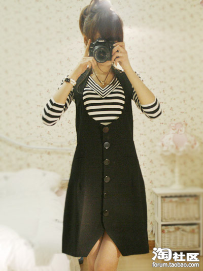 背心裙里也可以搭配长袖的yy 因为是白底的,所以搭配任何颜色都可以哦~