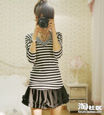 恩 一样的条纹T恤,泡说过咱是条纹控吧~哈哈~