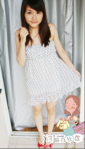 MM们会发现我很喜欢这种款式的衣服,因为我肚子上有肉所以我喜欢宽松点,呵呵,有心计吧,蕾丝的吊带很舒服,显得腰身很细,啦啦啦