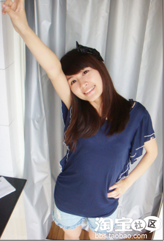 ,所以选了件遮手臂的T,袖子的设计很漂亮,和我的花边短裤呼应,垂感很好,喜欢哈。就是少跟项链,哪个MM推荐一下哈。