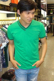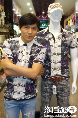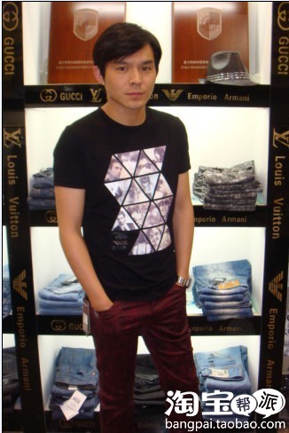 淡蓝色的T恤,加上蝴蝶花纹,男人偶尔也要清爽的一面。