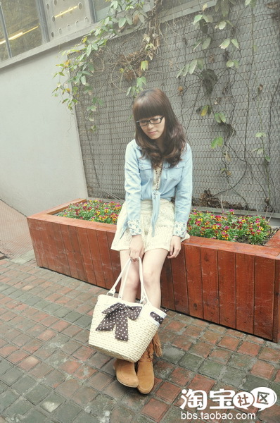 配蝴蝶结草包和帽子~~~出去郊游咯