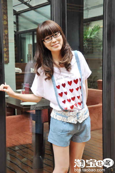 明显上面的红心T恤,蝙蝠袖的,很韩国味