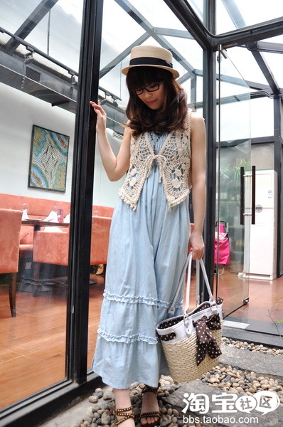 外面穿上手钩的背心,逛街时看起来比较婉约~~~~