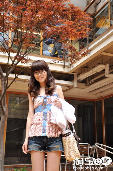 吊带衫,牛仔勾边打破都是碎花的感觉,使原来很小的吊带衫看起来很丰富