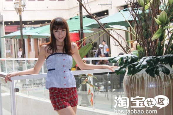 再来俏皮可爱的小抹胸加超酷格子短裤,是不是很清凉?