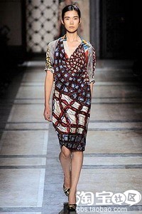 Diane von Furstenberg印花丝质颜色跳跃鲜明,而且廓型非常时髦。荧光色彩中巧妙加入暗色调,和飘逸的真丝质地完美呼应。