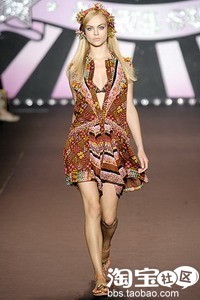 Anna Sui佩斯利纹或苹果图案的印花宽松罩裙。以 Anna Sui 风格重新着色的碎花图案,和一丝丝的民族风格都是其最爱的手法。