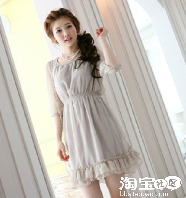 纯色雪纺连衣裙,还有荷叶边,百搭的哦!