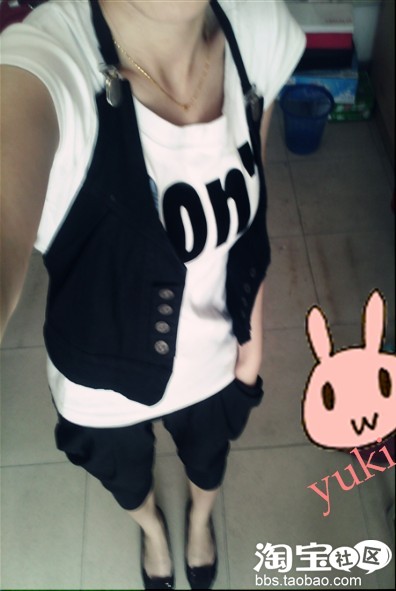 某个角落字母T 马甲风 嘿嘿 下面是一个哈伦裤 穿着很舒服 很有范哦