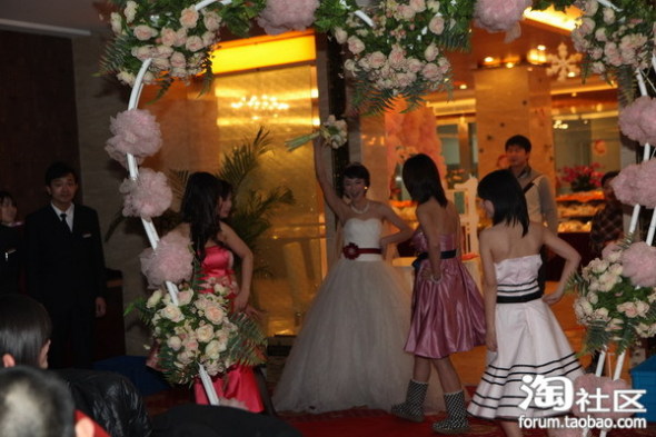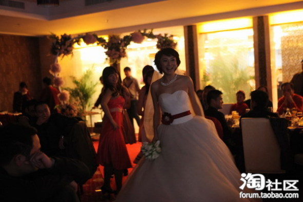 与其说是婚礼,不如说是派对,因为我们没有什么礼节上的东西,主要是大家要开心的来,更开心的回去.我们婚礼比较特别的地方就是我入场吧,呵呵,怎么特别呢?看一段视频吧,因为不知道怎么插入视频,就给一个链接吧.http://www.tudou.com/programs/view/owrixGh8XeI/