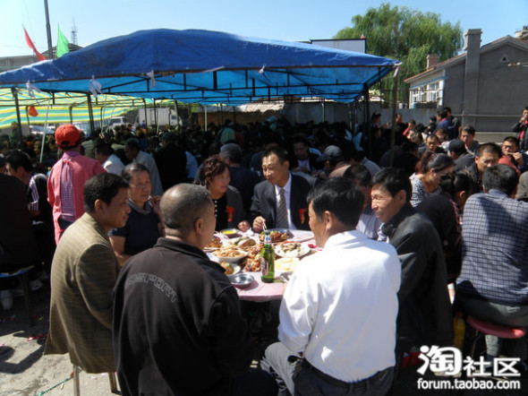 第一场是在老公家办的,那里是一个老矿区吧,根据我的理解......我第一次去老公家就是结婚那天.他们家因为人数众多,据不完全统计大约来了800号人,于是采取摆大棚的方式