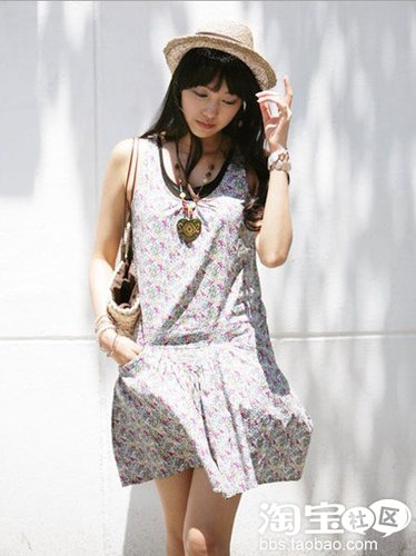 中长的碎花吊带连衣裙,清雅颜色具有广阔的包容性,款式也还算中规中矩,是初尝碎花者的不二之选。