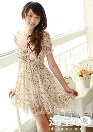 此款连衣裙是轻熟女们伪装小萝莉的必杀技,清新自然的花朵图案让你瞬间减龄。