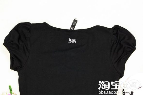 百搭 milk奶瓶 泡泡袖 修身圆领短袖T恤打底衫 白色 黑色