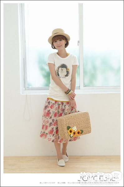白色T恤搭配雪纺长裙,很有淑女 气息哦!
