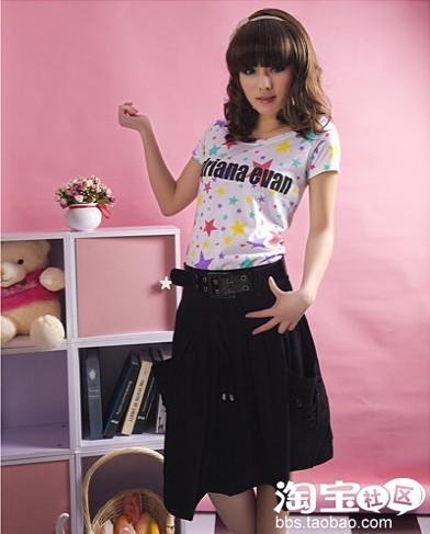 短袖T恤搭配宽松短裙,性感又时尚!