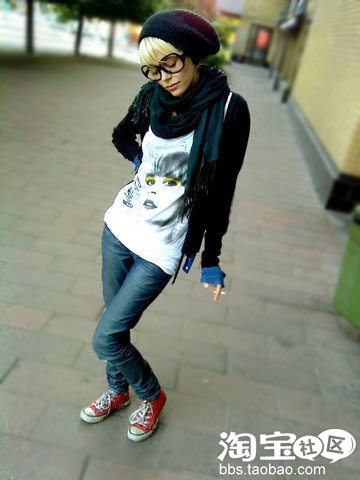 楼主萝莉时代爱这样的打扮。那时候的楼主足够滴瘦。涂鸦的T红色匡威,半支烟,MM淡定滴表情。