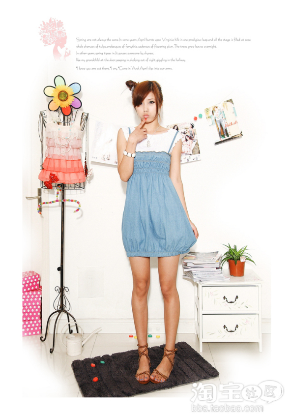 腰间绑上的蝴蝶结腰封就把整个造型完全转变