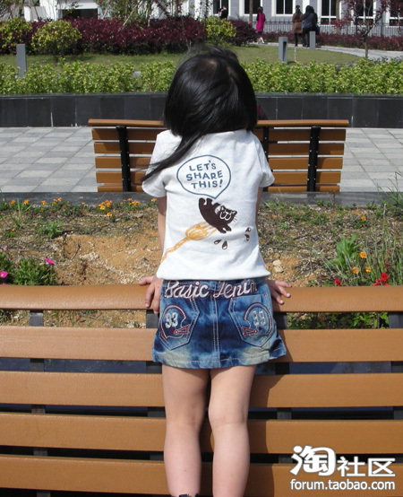 韩版做旧牛仔裙搭配前后帖布绣花的T恤也很漂亮呢
