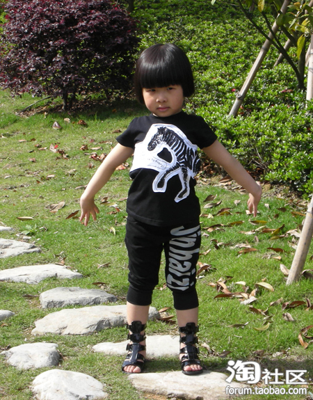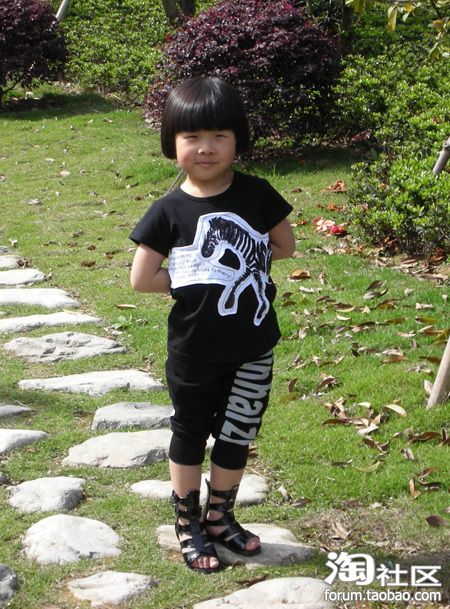 时尚的闪亮斑马T配上今年大热的袴裤,效果很不错哦,而且此款男女宝贝都可以穿哦~