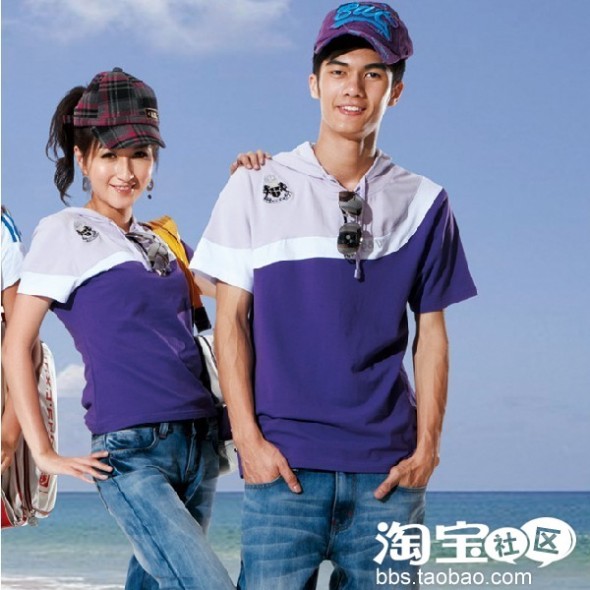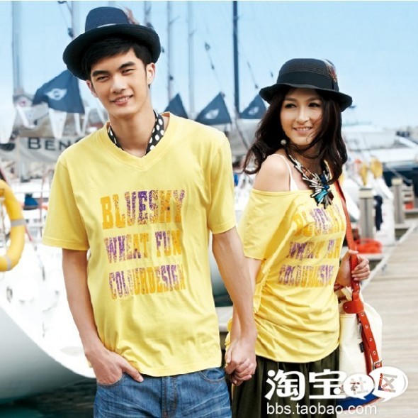 9.走喽~这个炎热的夏天,穿上一套清凉的短袖情侣T恤到海边冲浪了