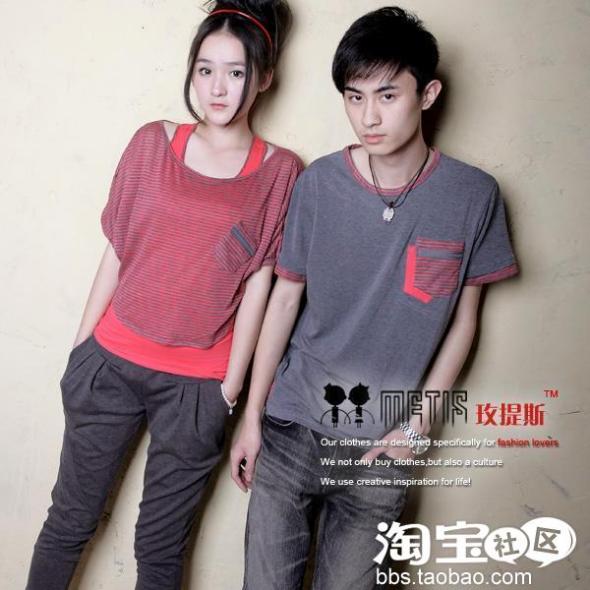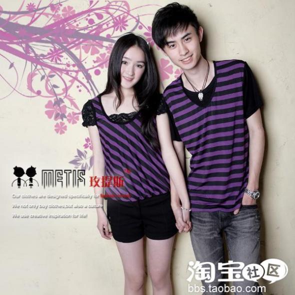 12.玫提斯情侣短袖T恤,女生为蕾丝裹胸加单件的设计,男生为假两件设计!高档蕾丝的运用,尽显小女人的气质!有个美美滴名字叫《勿忘我》勿忘我的花语--代表了永恒的记忆