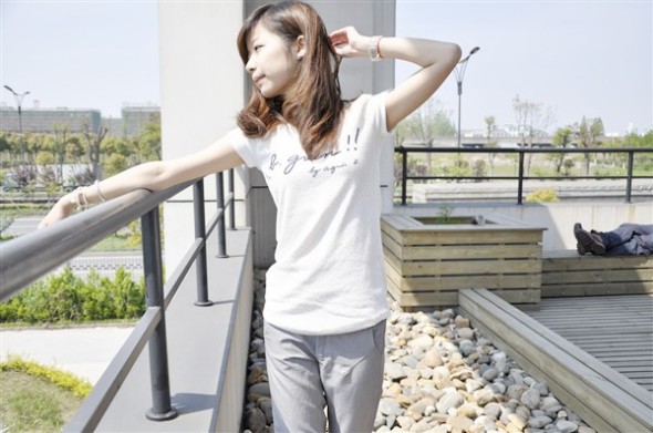 我想白色的字母T是最大众化的了,有时候小睿欧美,淑女啊穿多了,有点腻,