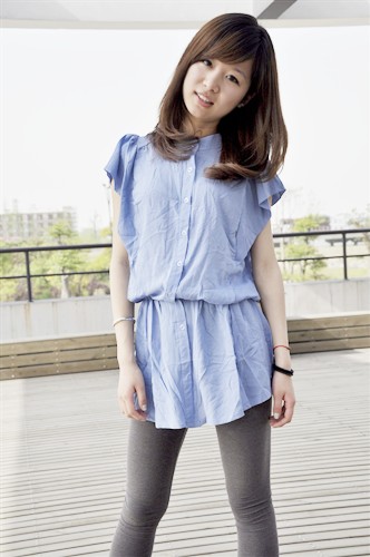 这是多样穿法的裙子,也是蓝蓝的,加上小波点,好卡哇伊咯。