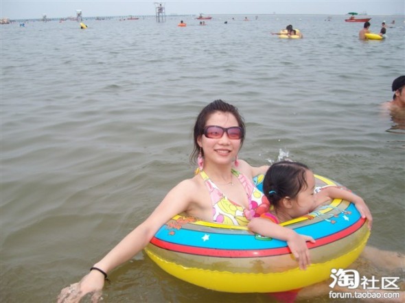 妈妈,小心点!我可不要在这游泳!我没带游泳圈啊!