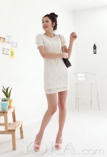 大肆流行的lace已经从局部蔓延至全身,白色公主气质的蕾丝连衣裙,甜美感十足,独特的镂空设计颇有几分小性感,泡泡袖的设计修身效果一流。搭配珍珠配饰华丽典雅,黑色手包让浪漫回归干练。
