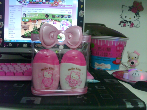 哈哈、真的很多呀!!楼主房间里的东西应该都有KITTY的图像。。。。