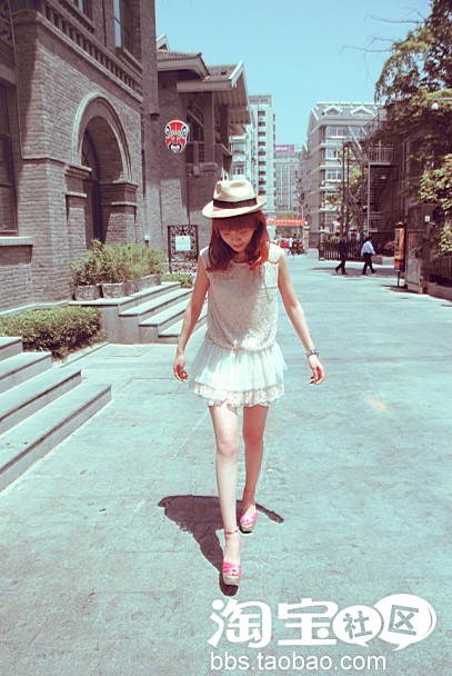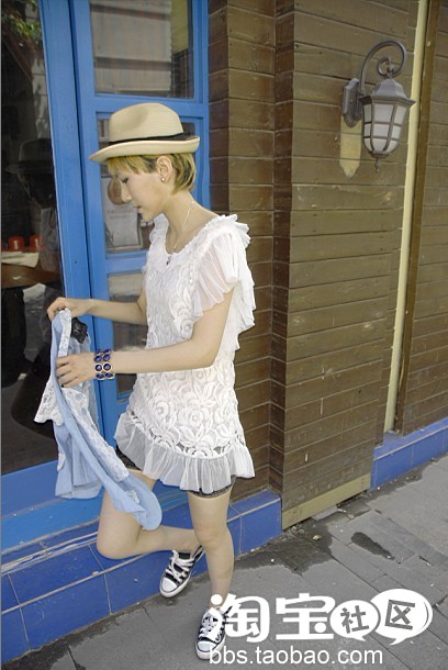 蕾丝配上海军蓝 会显得洋气哦~再搭上个夏日必备的草帽。。