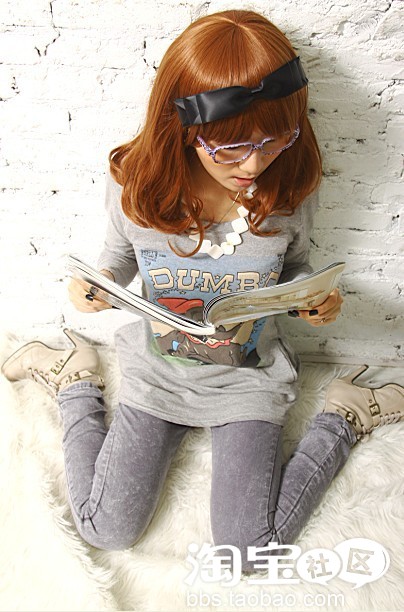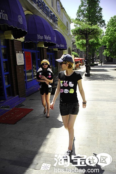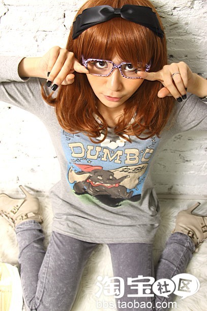 可爱T 可爱短裤加上可爱眼镜框框是关键哦 就算配上高跟鞋也不会觉得不可爱呢。。