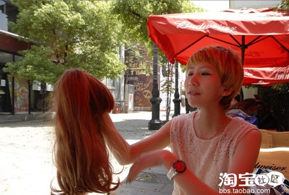 带上假发 配上吊带裙 打扮的很夏天~GAMMA 一下变的女人了吧~~