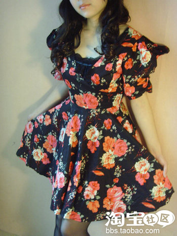 第八款 宫廷泡泡袖 大花朵 大摆连衣裙