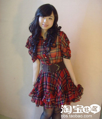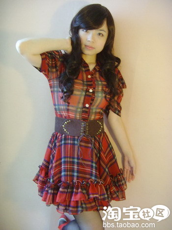 第五款 超甜美的泡泡袖苏格兰红裙子
