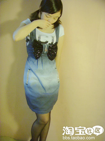 可爱的牛仔色背带裙