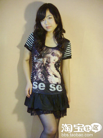 第十三款:条纹 美女头像T恤裙