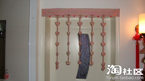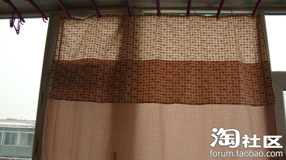 这两块布也是淘宝买地~10块钱半米~~我用来自己做阳台窗帘~~全是一针针手缝的~~把我给累的啊。。。不成熟的成品: