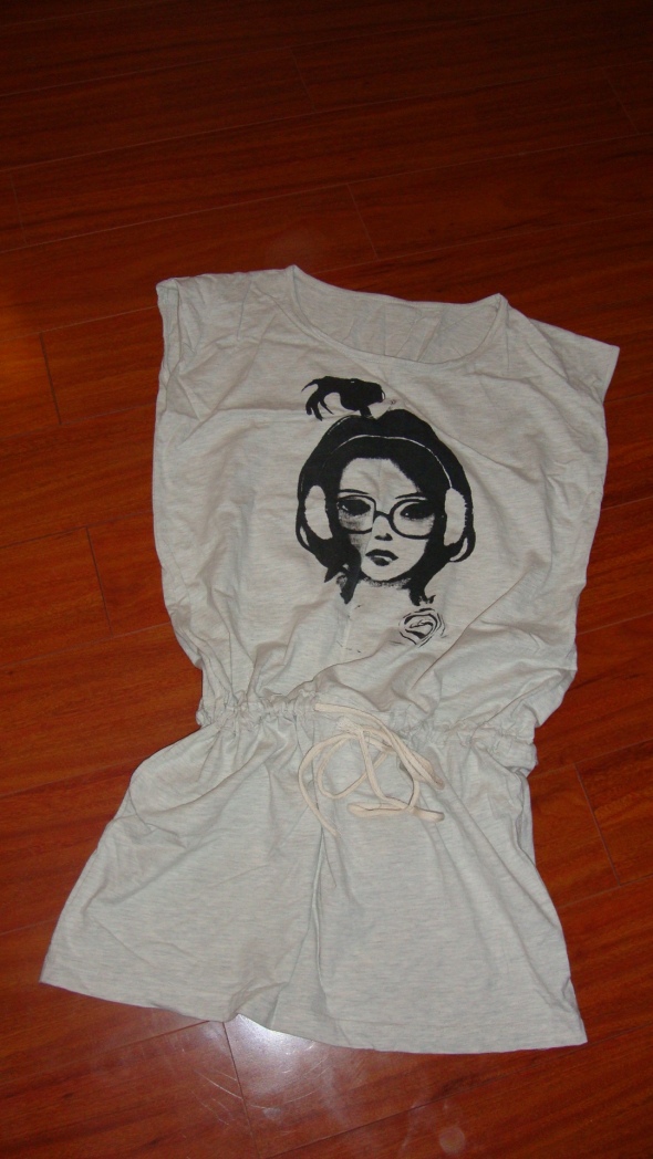 以上三件一是家的~好像满多少送一件来着~下边这件就是送的~其实我就是冲着第一件白色的去的~是在淘宝画报上看见的这件衣服,很喜欢~就根据那张图片一家一家的找,终于找到了~~可惜我的骨架太大,买回来穿不上。。。唉!!好像40多,卫衣38吧~