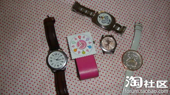 啥东西到我手都没好。。看见那个没表带的了吧?那是卡西欧的~200多买的~~拿专柜验了是正品~~人家说~~卡西欧这种牌子犯不上做假。。。话说我用东西太狼狈~~这表也就带两月就不像样了~表带折了,表盘上全是划痕~~朋友和我一起买的~~人家的就好好的。。上边的米奇的30多吧,左边的40多,邮票那个20多,右边那白的是我逛街时候买的,20多~~~都很便宜吧~~