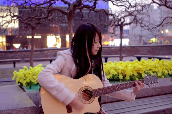 拿着吉他做在椅子上那个好像西单女孩