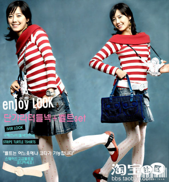 条纹t恤加超短裙,可爱哦又显得高挑哦