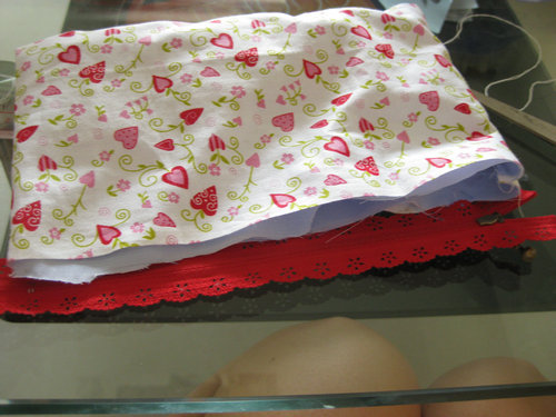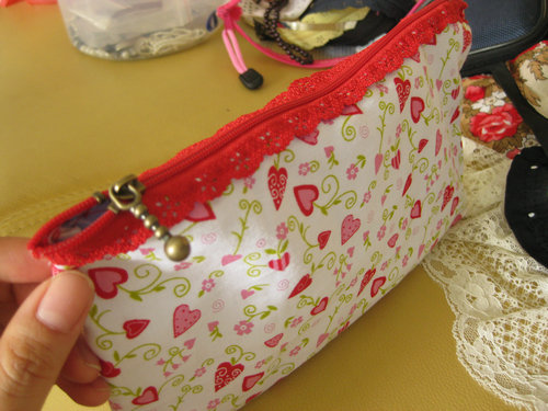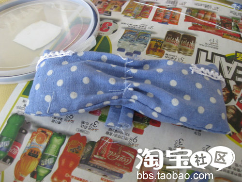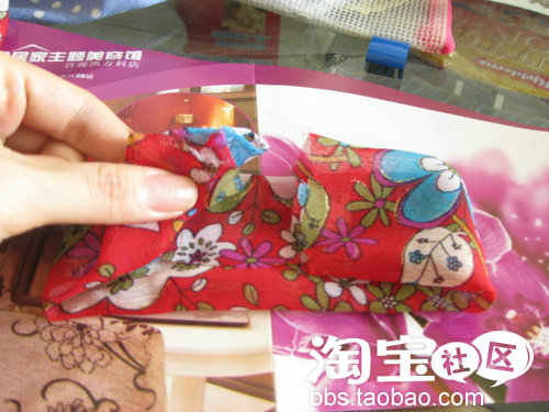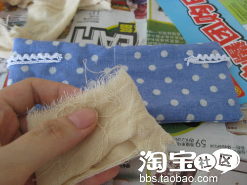缝好了小布,做我的小化妆袋的外观装饰。