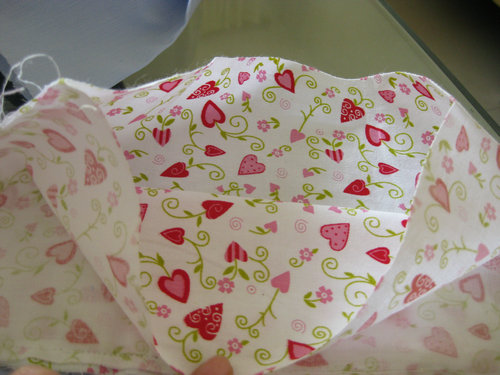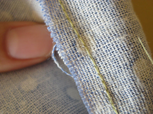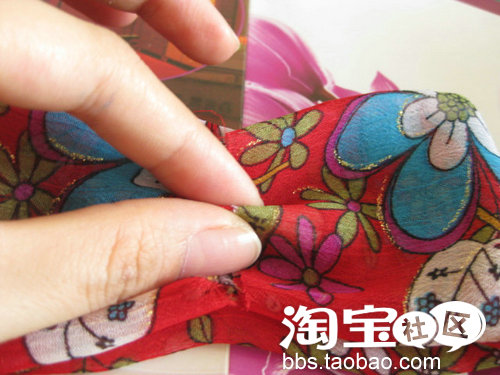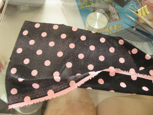 这个工序我觉得最难~因为布料很滑,是雪纺来的,真的很难抓好~