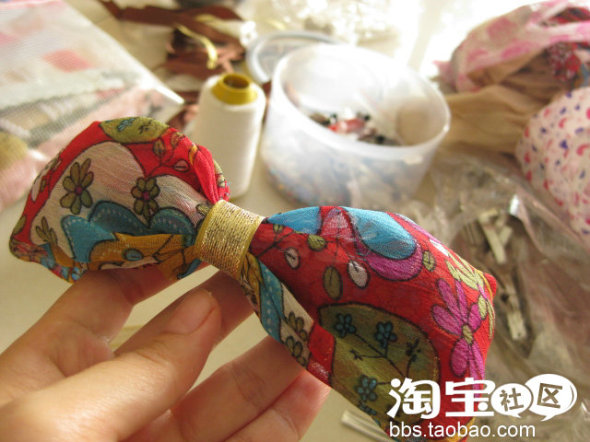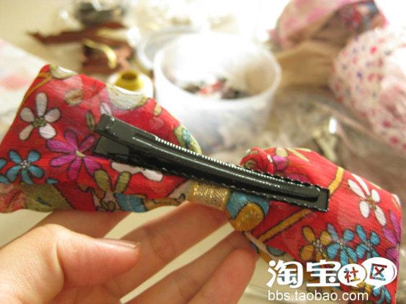 7.10. DIY又有更新了,这次是制作雪纺蝴蝶结发夹~图案有点欧式复古。