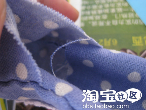 将布反转~在背面用迷你小缝纫机把两边缝好,留起中间的开口,然后再翻回正面出来,这里可以看到里面的痕迹。
