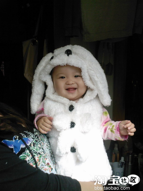 看到了吧。宝宝的帽子都是网购的,在一家小店定做的。