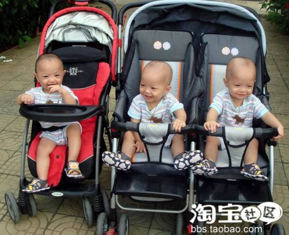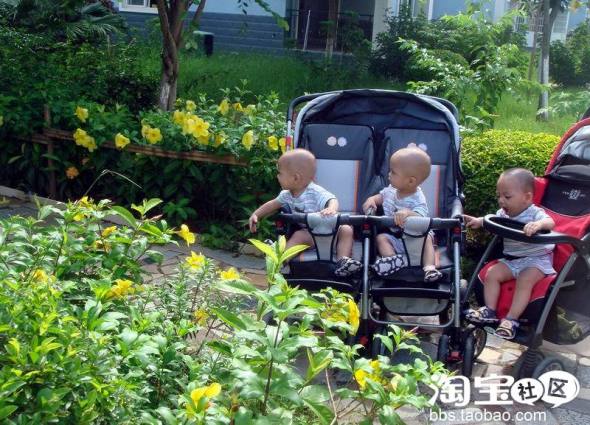每每我们推着小车车出去的时候,回头率是200%,在这个小城市里我们家三个小家伙的出世可以说是不大不小的新闻了~~~